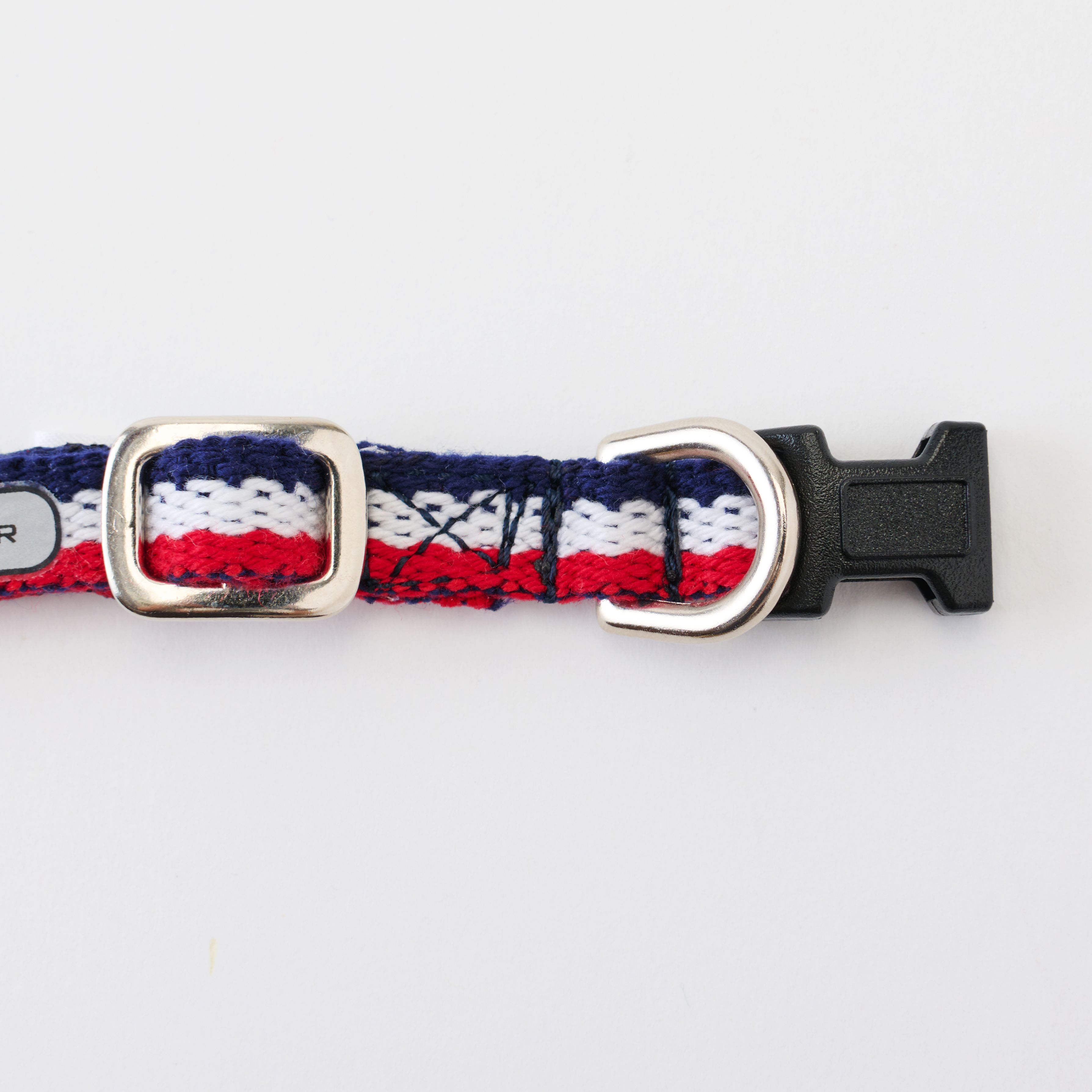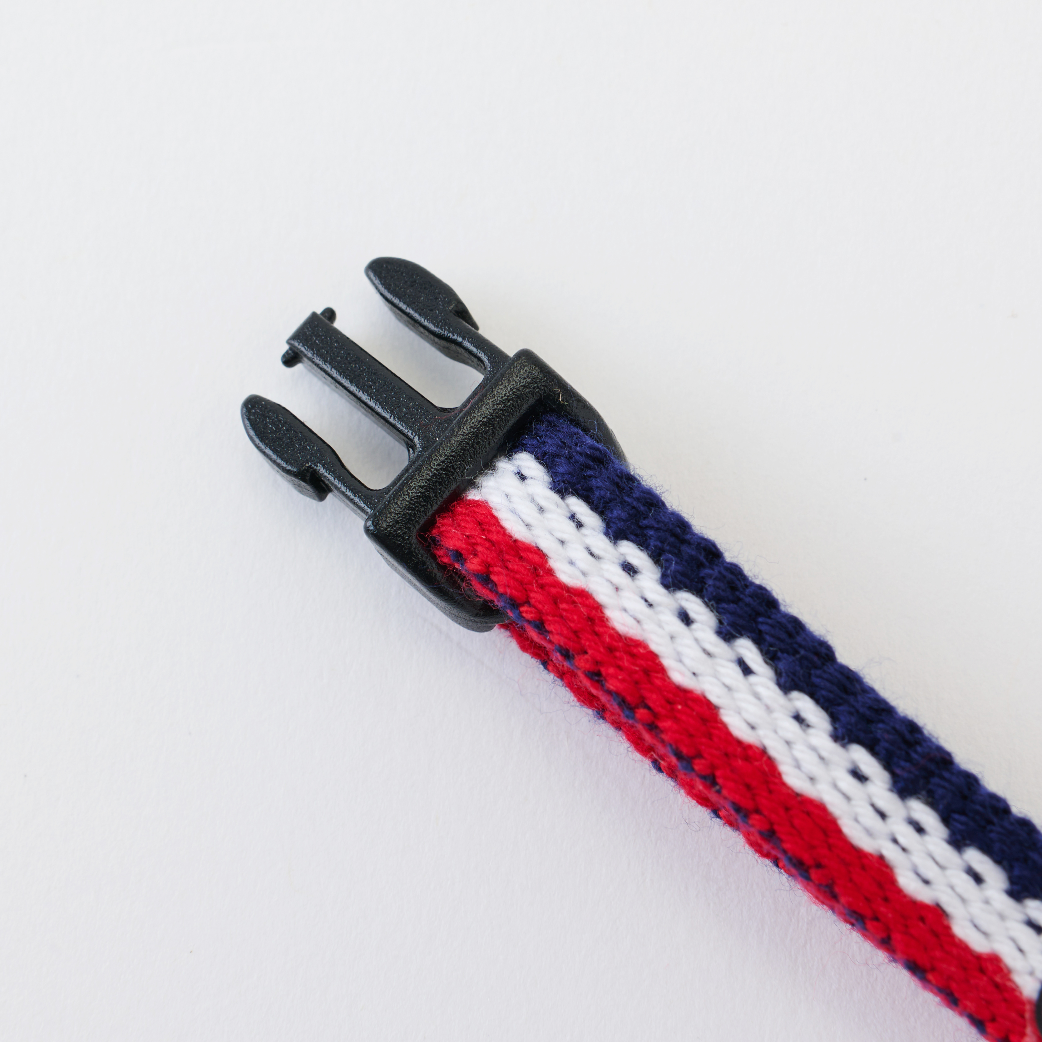 テープ幅に合わせたしっかりとしたバックルは、カチッと留められるので簡単に愛犬の首に付けていただけます。